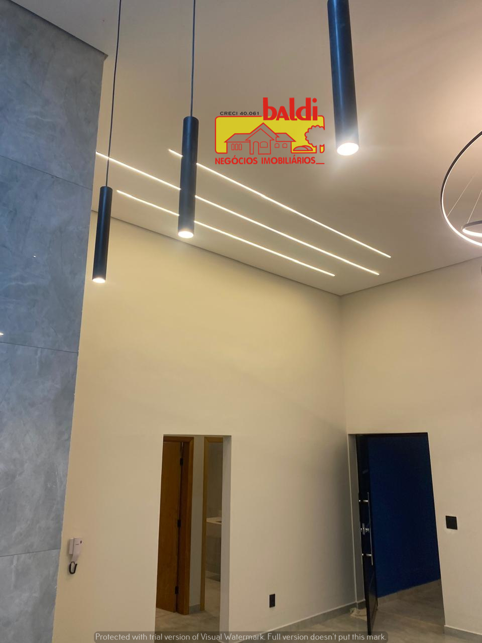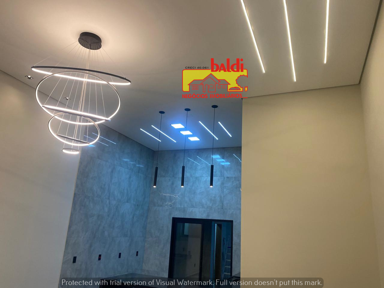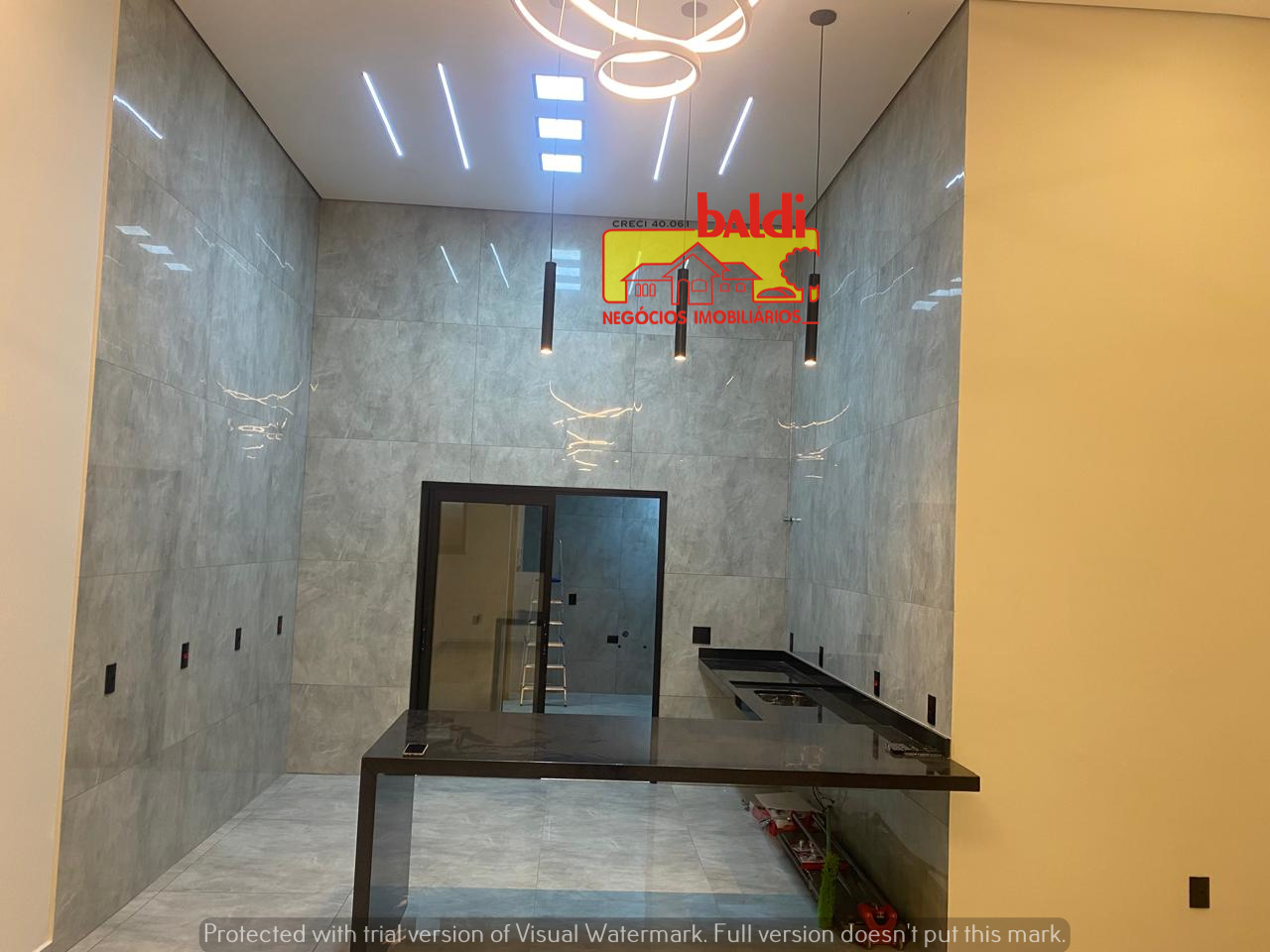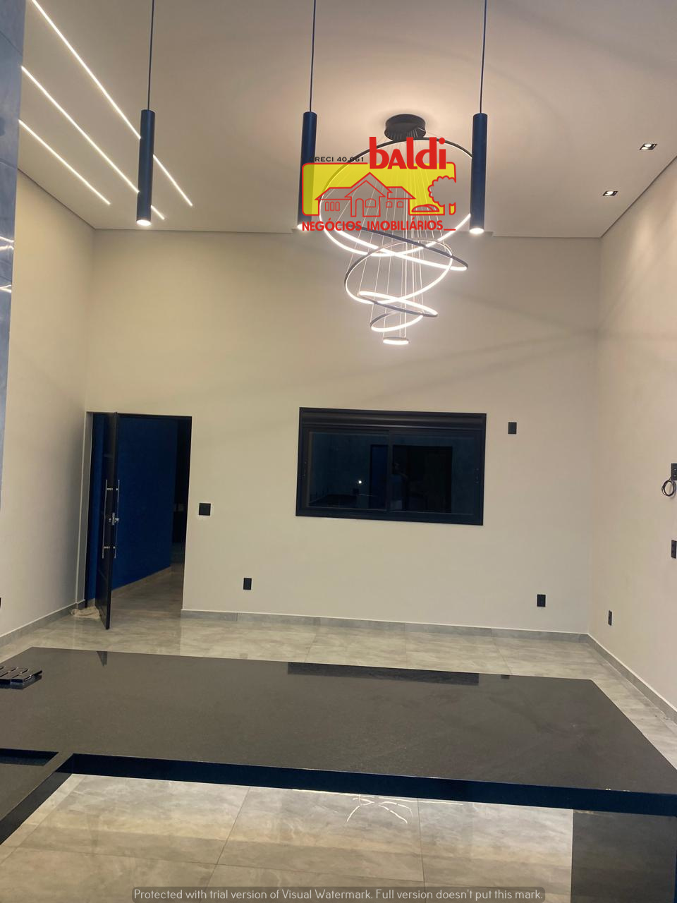 🔸️Sala e cozinha em conceito aberto, com pé direito livre de 4,40m🔸️Acabamento completo em porcelanato 0,80 x 0,80 (interno e externo)🔸️iluminação 100% em LED, com lustres modernos