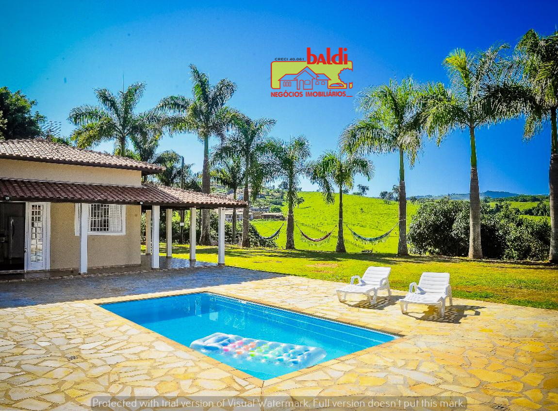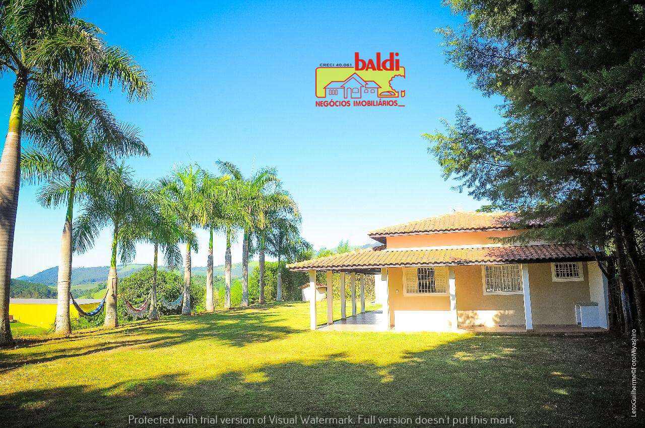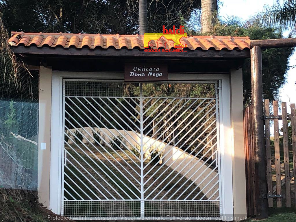 CHÁCARA Para Lazer ou Residência, em terreno de 1.471,47m² e Área Construída de 122,39m², (casa= 39,15m², varanda= 46,83m², rancho= 36,41m²) contendo uma pequena residência que é composta de dois dormitórios, sala, cozinha, banheiro social, varanda com linda vista para as montanhas, ampla área gramada, paisagismo, piscina em vinil, área para sol com revestimento em pedras, edícula/despejo para ferramentas, pequeno salão de festas com churrasqueira, forno e fogão à lenha e canil. Local alto, excelente acesso, portão automatizado. Preço………………… R$. 550.mil.