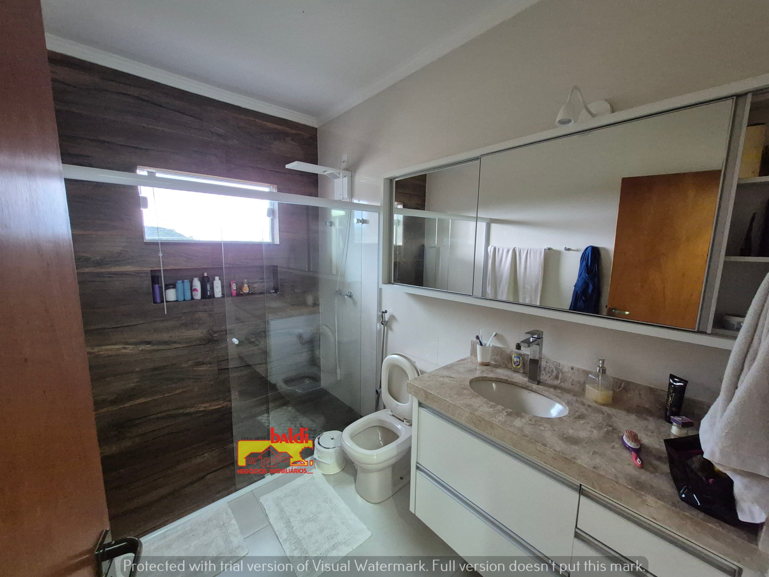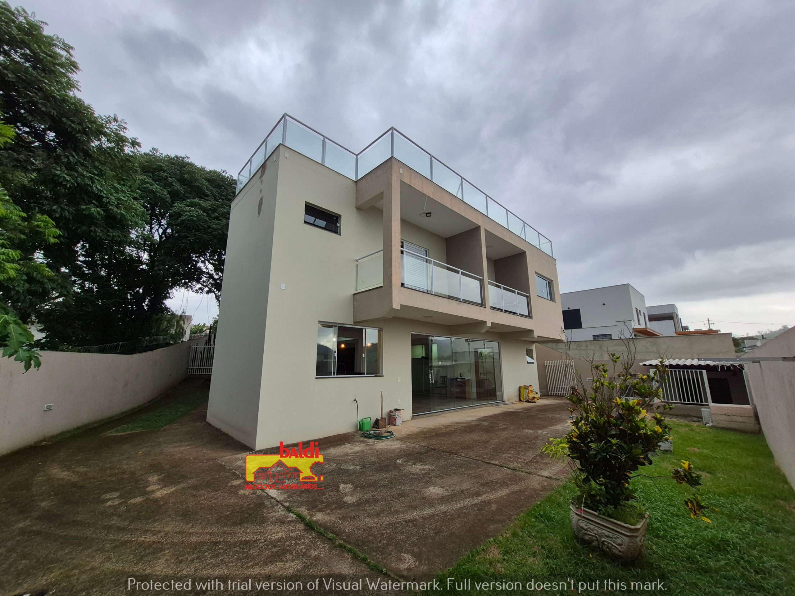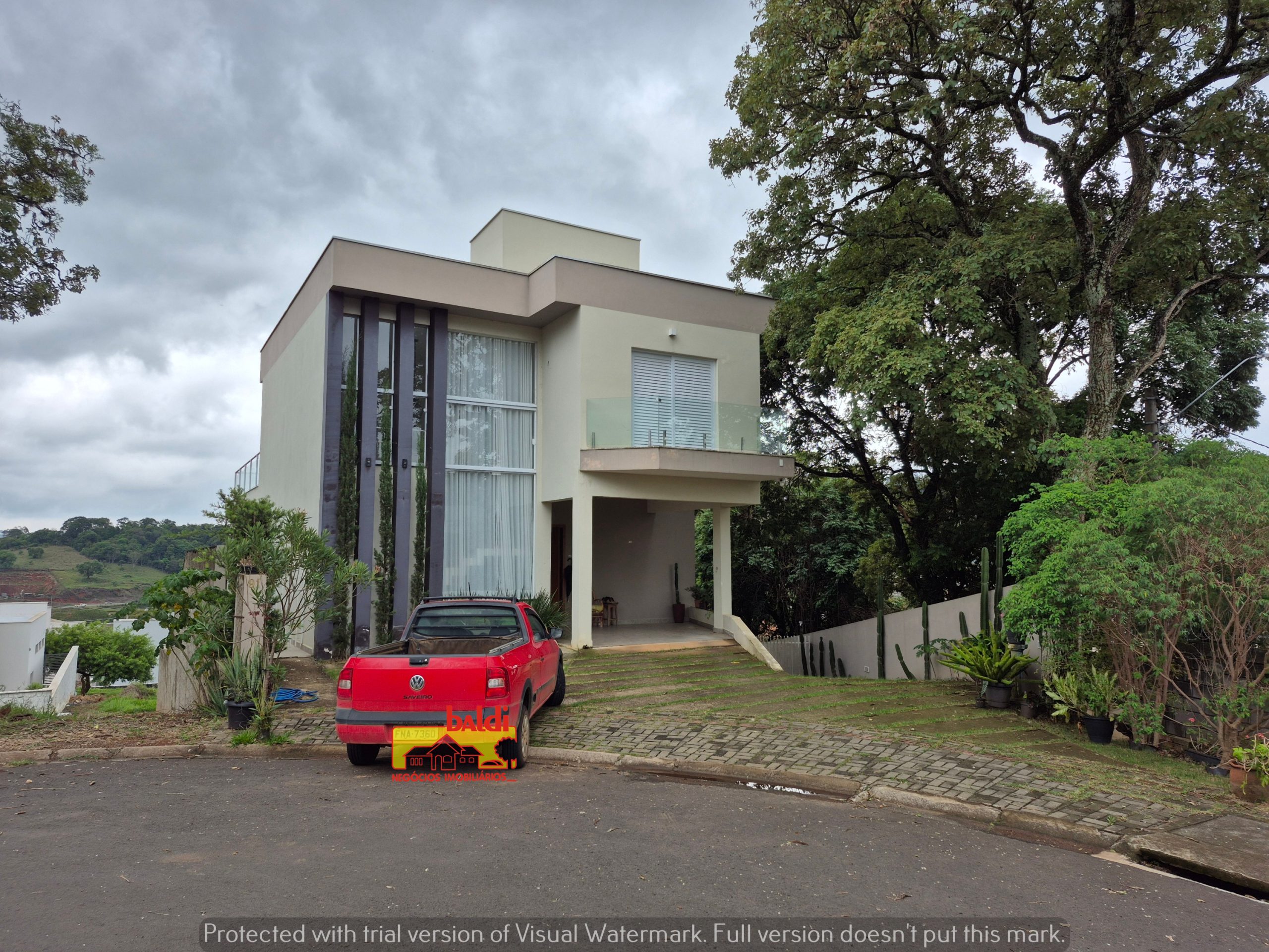 TERRENO de 434,36m² e Área Construída de 380,93m², composta de 1 vaga coberta e diversas descobertas, amplo recuo frontal com paisagismo, No PAVIMENTO SUPERIOR, por um acesso em alvenaria, escada com revestimento de porcelanato, 3 quartos, todos com pisos laminados de madeira, todos com armários planejados, sendo um com sacada para a frente da casa; um banheiro social grande, com revestimento de porcelanato, box blindex! Os outros dois quartos com sacadas saindo para um belvedere de 70m2, com manta asfáltico e revestido de porcelanato, todo cercado com parapeitos blindex, com vistas para os verdes das cadeias montanhosas, bem como, para vista de todo o condomínio. NO TÉRREO, Cozinha com armários planejados, cômodos para depósito de mantimentos com prateleiras de aço, tanquinho para suporte à cozinha, sala de jantar também com sacada, ampla sala estar, biblioteca/escritório, banheiro social e lavabo, suíte Master com sacada exclusiva, parapeito blindex, closet com armários planejados, amplo WC social. PAVIMENTO INFERIOR (17 degraus), Lavanderia coberta, ampla Área gourmet, churrasqueira completa, pia, armários, ampla área para descanso ou ampliação da residência (3 ambientes), mais um dormitório para hóspedes ou escritório. Banheiro social com excelente acabamento. Câmeras de monitoramento frente e fundos, amplo canil e casa para tartaruga.