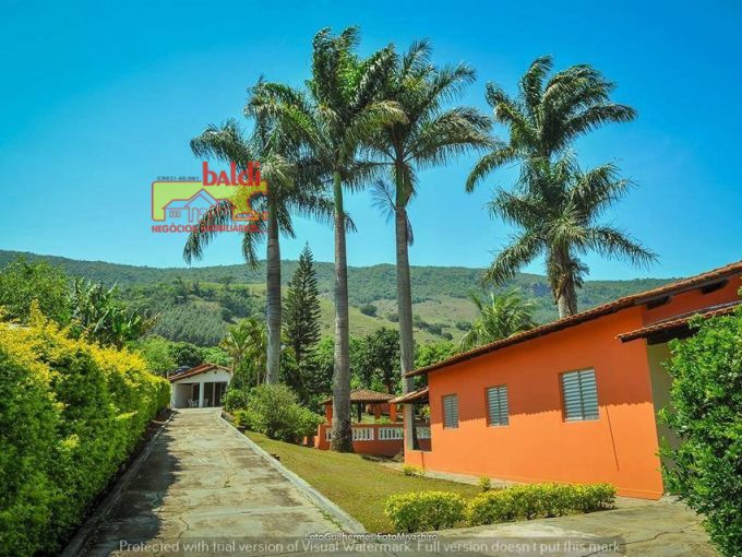 “POUSADA e CAMPING” EM BUENO BRANDÃO/ MG, TERRENO de: 48.220,00m². A/C de: 720,00m²., cercada de lindo ribeirão, paisagem exuberante, capela molde séc. XVIII, casarão centenário, amplo chalé em madeira, seis chalés em alvenaria, ampla área para camping, quadra de vôlei e beach tenis, churrasqueira, vestiários, banheiros externos, lago com peixes (aproximadamente 400 m²), carpintaria e tulha para ferramentas.